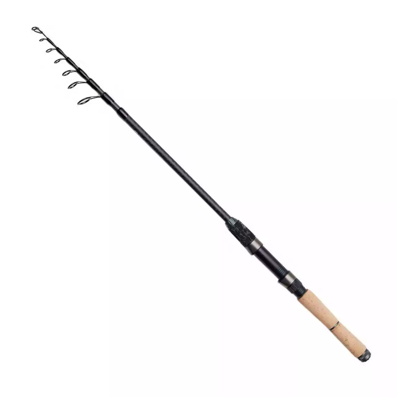 Schlanke, leichte und leistungsstarke 24TC-Carbon Blanks, mäßig schnelle Aktion, schwarz eloxierte Metallteile, leichte Einstegringe, hochwertiger Vollkorkengriff, …