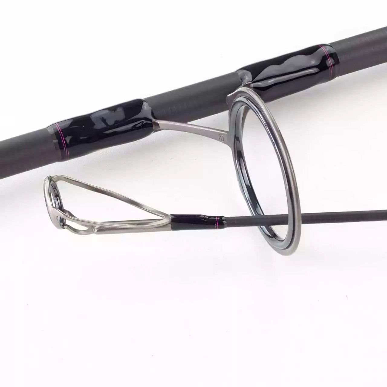 Sowohl der Blank dieser Weitwurfrute, als auch die Ringwicklungen sind in einem edlen mattschwarzen Farbton gehalten. Allerdings sind die Wicklungen mit zusätzlichen, pinkfarbenen Zierwicklungen, als optisches Highlight, ausgestattet.