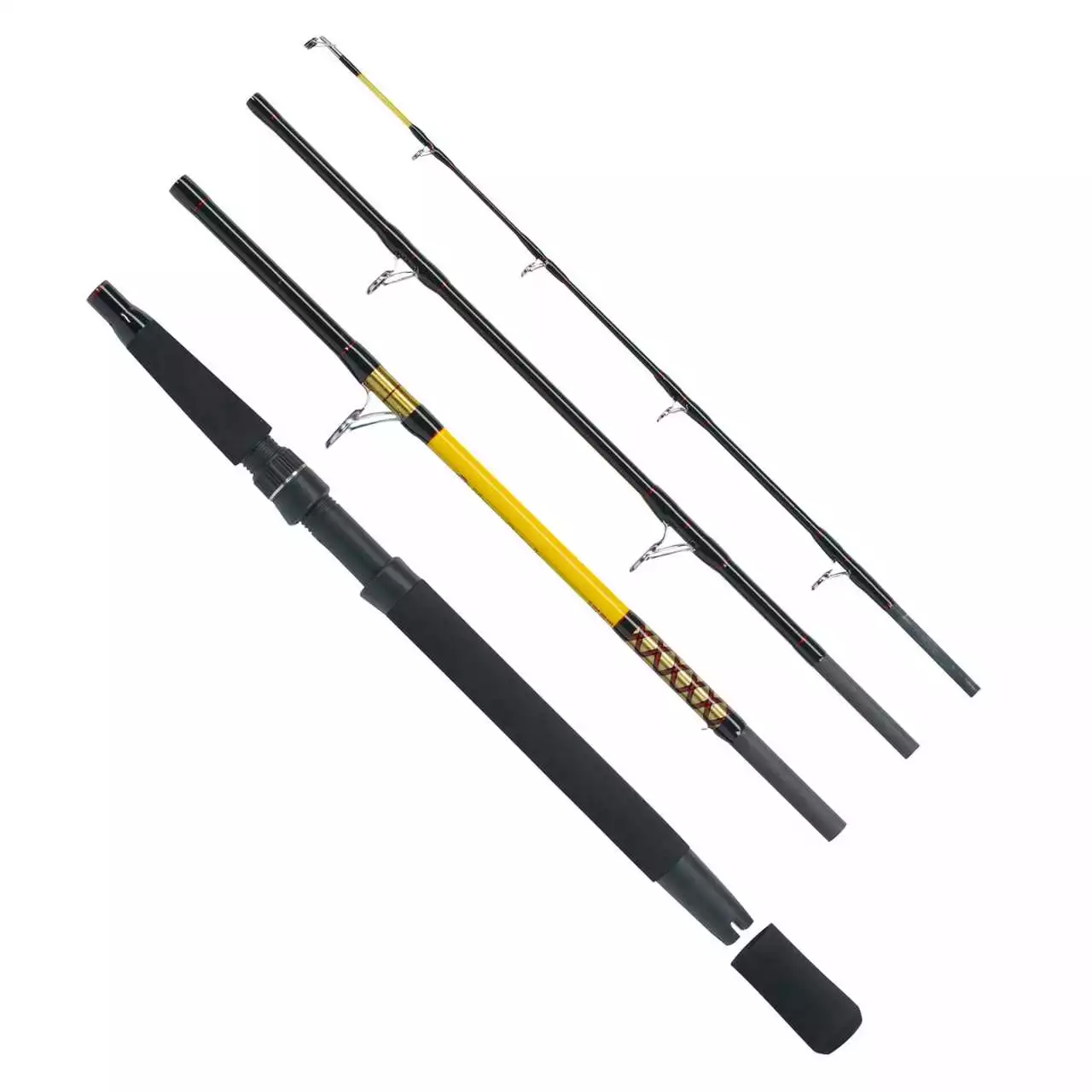 Aufgrund der engen und großen Beringung kann, neben der Multirolle, auch mit entsprechend großen und stabilen Stationär-Rollen gefischt werden.
